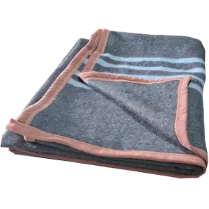 High quality large dog blanket. Grey color with blue stripes throughout and pink ribbing on the edges. Durable material – suitable for frequent washing and suitable for machine wash. The blankie is soft to touch, lightweight and compact – giving your dog the “at home feeling”.